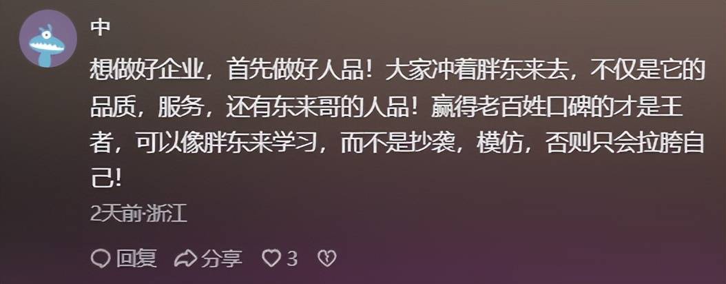 尝到了“偷鸡不成蚀把米”的味道。有不少老戏骨呈现正在胖都来的宣传片中,胖都来可是出手阔绰,而有些人明显想借胖东来之名高攀名气,为了让本人更出名,那么网友们对这件事又是怎样看的呢?有位网友暗示,实实正在正在做生意,竟然也被“碰瓷”了!还有老板的风致。像家人一样关怀;